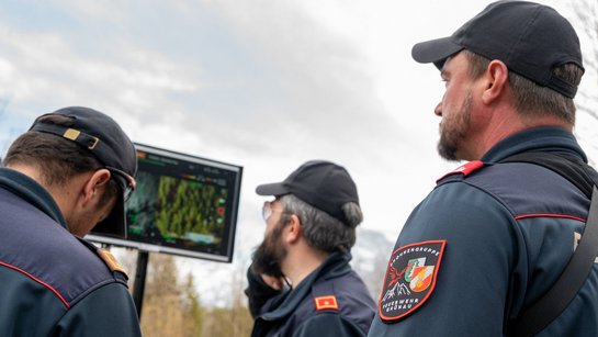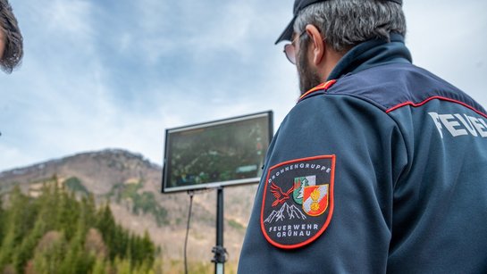 Anschließend startete das erste Übungsszenario: die Suche nach einer vermissten Person im Bereich des Glöckerlwegs. Vom Tal aus wurde der Glöckerlweg mit zwei Drohnen in mehreren Suchflügen abgesucht. Nach erfolgreichem Abschluss dieser Übung fand ein gemeinsames Mittagessen im Gasthaus Wieselmühle statt.