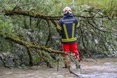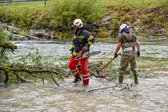 Aufgrund starker Sturmböen war eine Weide in die Alm gestürzt. Da mit steigenden Pegelständen zu rechnen war und sich der Baum in unmittelbarer Nähe eines Kraftwerks befand, bestand die Gefahr einer Verklausung daher wurde die Feuerwehr zur Gefahrenabwehr angefordert.