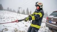Während des laufenden Übungsbetriebs wurde die Feuerwehr zusätzlich zu einer PKW-Bergung am Kasberg alarmiert. Ein Fahrzeug hatte sich im Schnee festgefahren und wurde mithilfe der Einbauseilwinde des LFA-L erfolgreich geborgen. Nach Abschluss dieses realen Einsatzes wurde die Übung fortgesetzt.