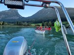 Im Verlauf der Suchaktion konnte das Rettungsboot der FF Grünau den Vermissten lokalisieren. Die gerettete Person wurde anschließend zur Einsatzleitung geschleppt.