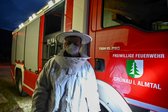 Die Bewohnerin bemerkte bereits vor Tagen ein Wespennest in der Fassade. Heute waren die Wespen sehr zahlreich durch die Fassade in die Wohnung eingedrungen. Die Melderin wurde bis zum Eintreffen der Feuerwehr bereits mehrmals von Wespen gestochen. Nach der Erstversorgung durch den Feuerwehr Medizinischen Dienst (FMD) wurde das Wespennest beseitigt.