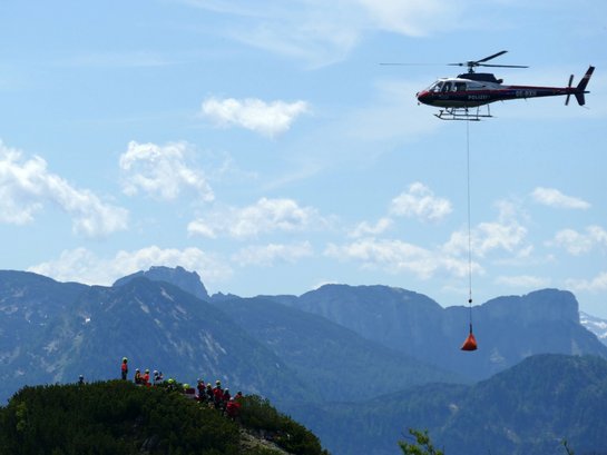 Am ASKÖ Sportplatz Ebensee wurde der Landeplatz für die Polizeihubschrauber aus Linz und Salzburg eingerichtet. Von dort aus erfolgten zunächst Transportflüge, um Gerätschaften und Personal in den Schadensraum auf den Berg zu fliegen. Auch ein Standbehälter wurde nahe der Bergstation positioniert, welcher im Anschluss durch Wassertransportflüge befüllt wurde, um die Löschwasserversorgung sicherzustellen. Für die Treibstoffversorgung der Hubschrauber sorgte der Tankanhänger der FF Scharnstein.