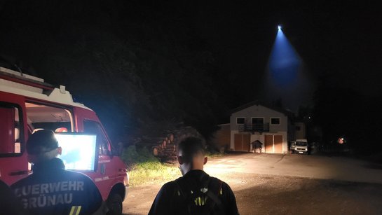 Einige Kameraden befanden sich noch nach der Übung im Feuerwehrhaus, als kurz nach 22:30 Uhr ein Alarm die Feuerwehr Grünau erreichte. In Scharnstein wurde eine Person als vermisst gemeldet, woraufhin die örtliche Feuerwehr die FF Grünau um Unterstützung bat.