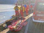 Am Einsatzort wurden wir von der Bergrettung in die Lage eingewiesen. Während durch die Rettungsmannschaft der Rettungsschlitten (Sled) vorbereitet wurde, konnten die beiden Eisläufer glücklicherweise selbstständig und unverletzt ans Ufer gelangen.