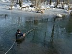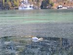 Schließlich gelang es, das Eis in Richtung Ufer aufzubrechen und den Schwan dorthin zu treiben. Am Ufer wurde er eingefangen, von Wildtierbiologen untersucht und anschließend wieder in die Freiheit entlassen.