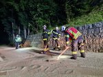 Eine Motorradfahrerin kam von der Fahrbahn ab und prallte gegen eine Stützmauer. Sie wurde durch den Unfall unbestimmten Grades verletzt und bereits beim Eintreffen der Feuerwehr von Ersthelfern versorgt. Die Aufgabe der Feuerwehr bestand darin die auslaufenden Flüssigkeiten zu binden. Während der Arbeiten war die L549 Höhe KM 8,8 gesperrt.